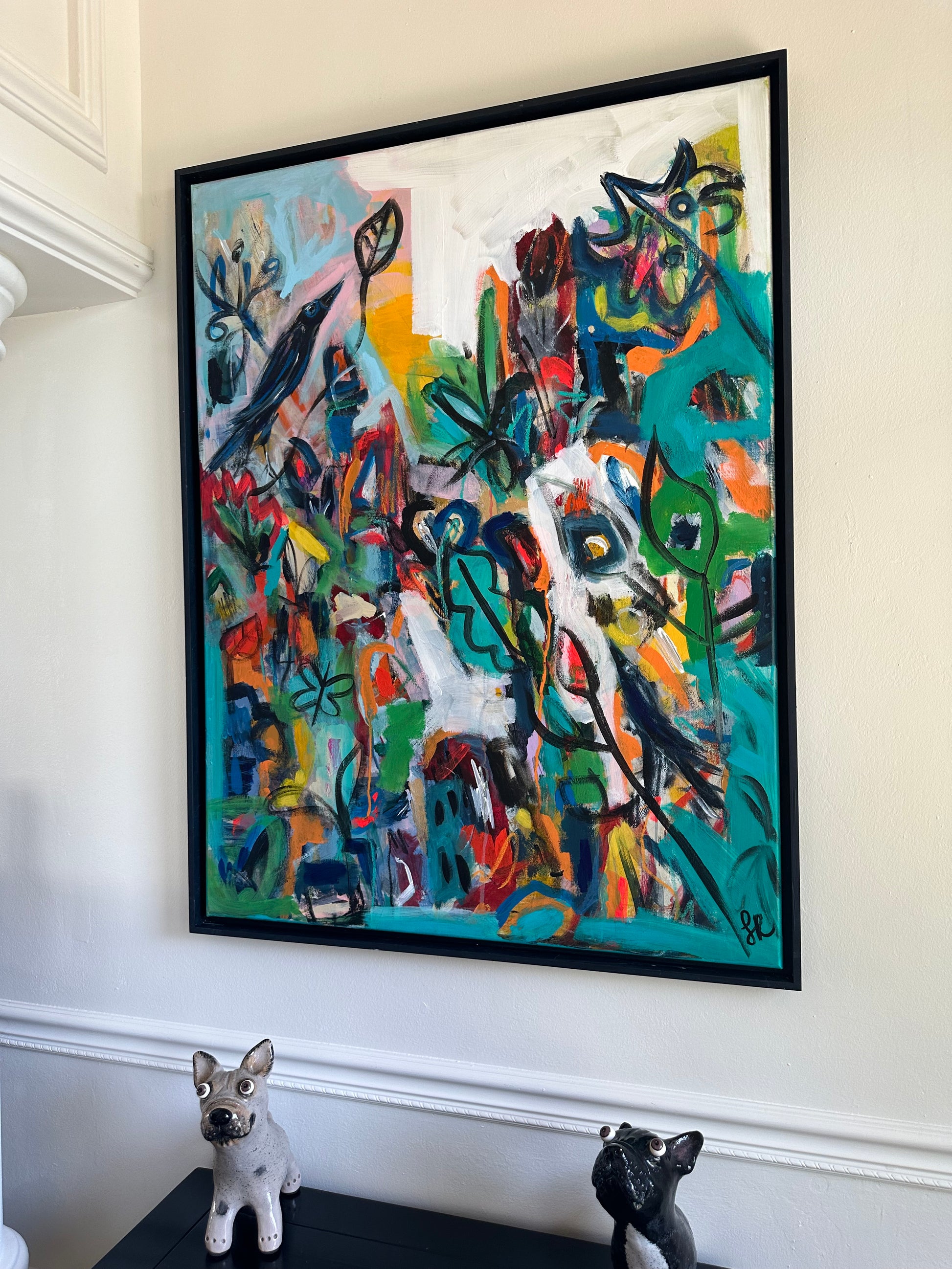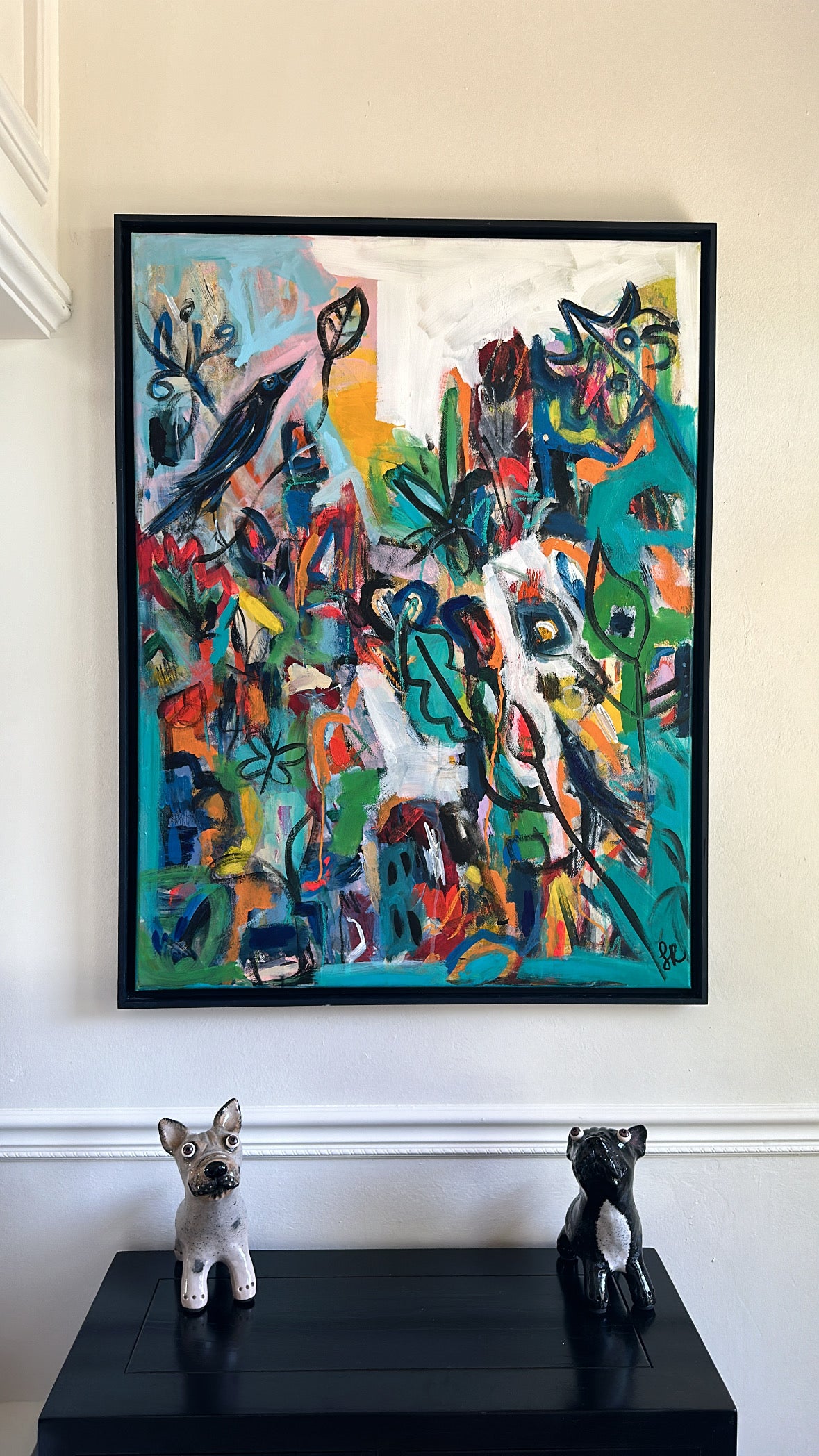 Hide and Seek 101.5 x 76cm mixed media on canvas. Inspired by Singapores Botanical Gardens.