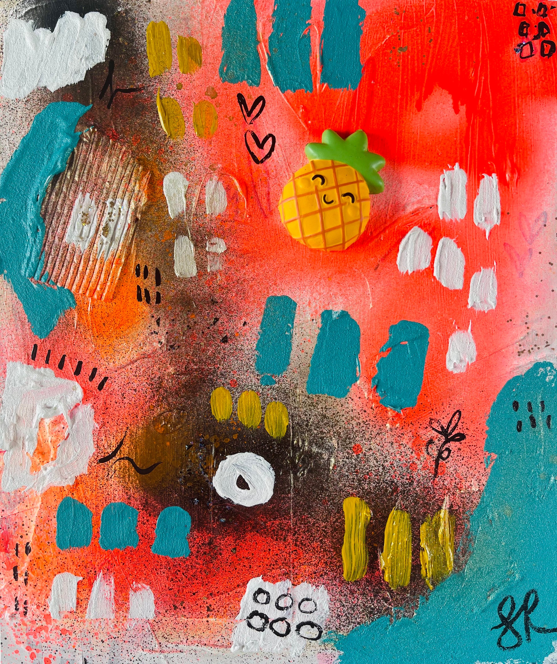 Gong Xi Fa Cai! One. Print of this cheerful mixed media on wood. Vibrant, fun and happy. Bringing joy and fortune into your home 🍍 custom print sizes available. Limited edition of 50.