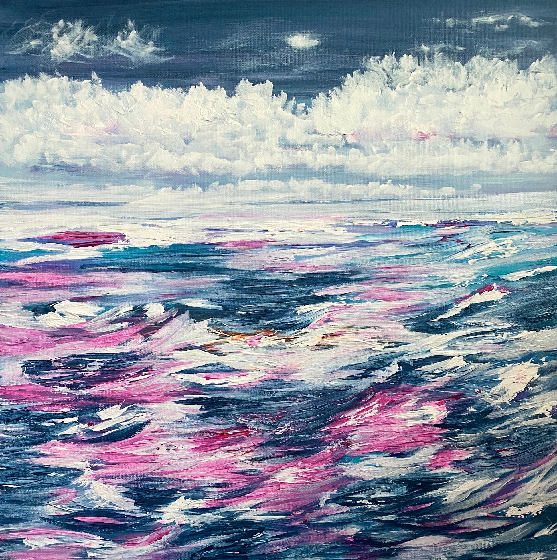 Into The Unknown 18” x 18” on 1.5” deep gallery canvas. This original painting comes professionally float framed and ready to hang. Free delivery to Singapore.