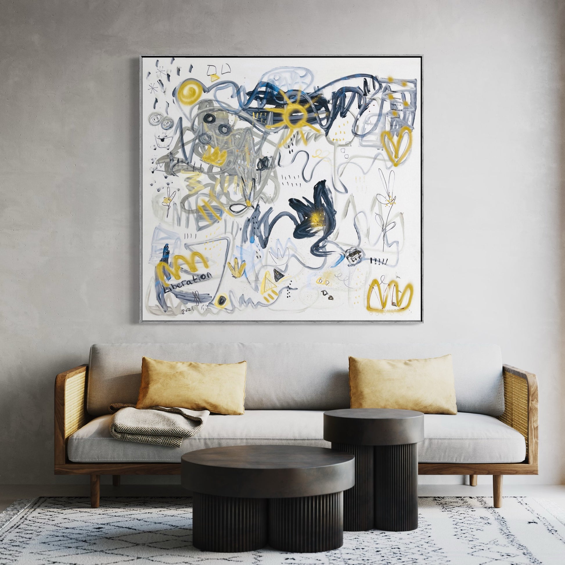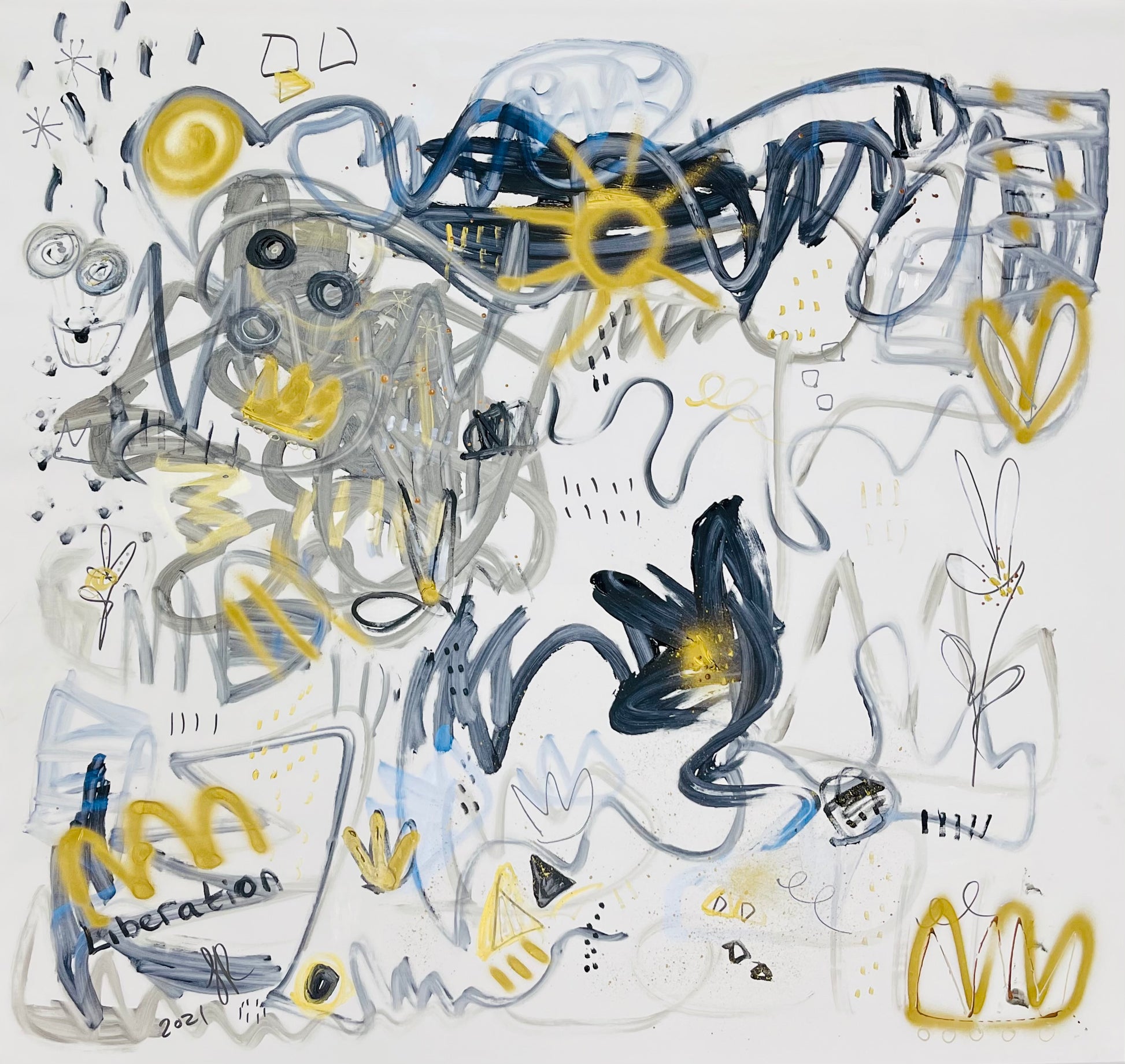 Liberation is about letting yourself go. Freeing your self from expectations and stresses and entering a world of imagination and beauty. Mixed media on 54” x 57” unstretched canvas. Free stretching, installation and delivery for Singapore collectors.