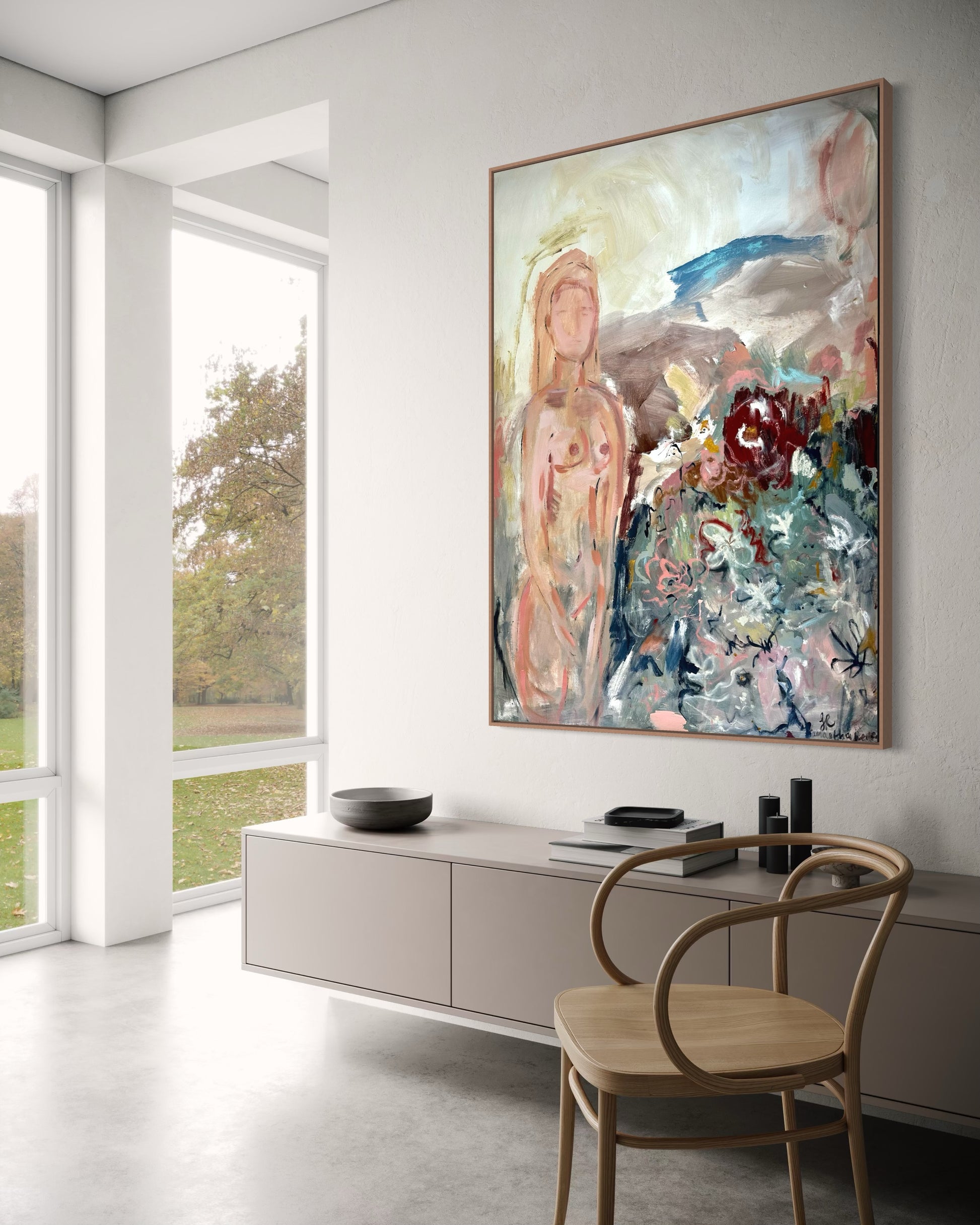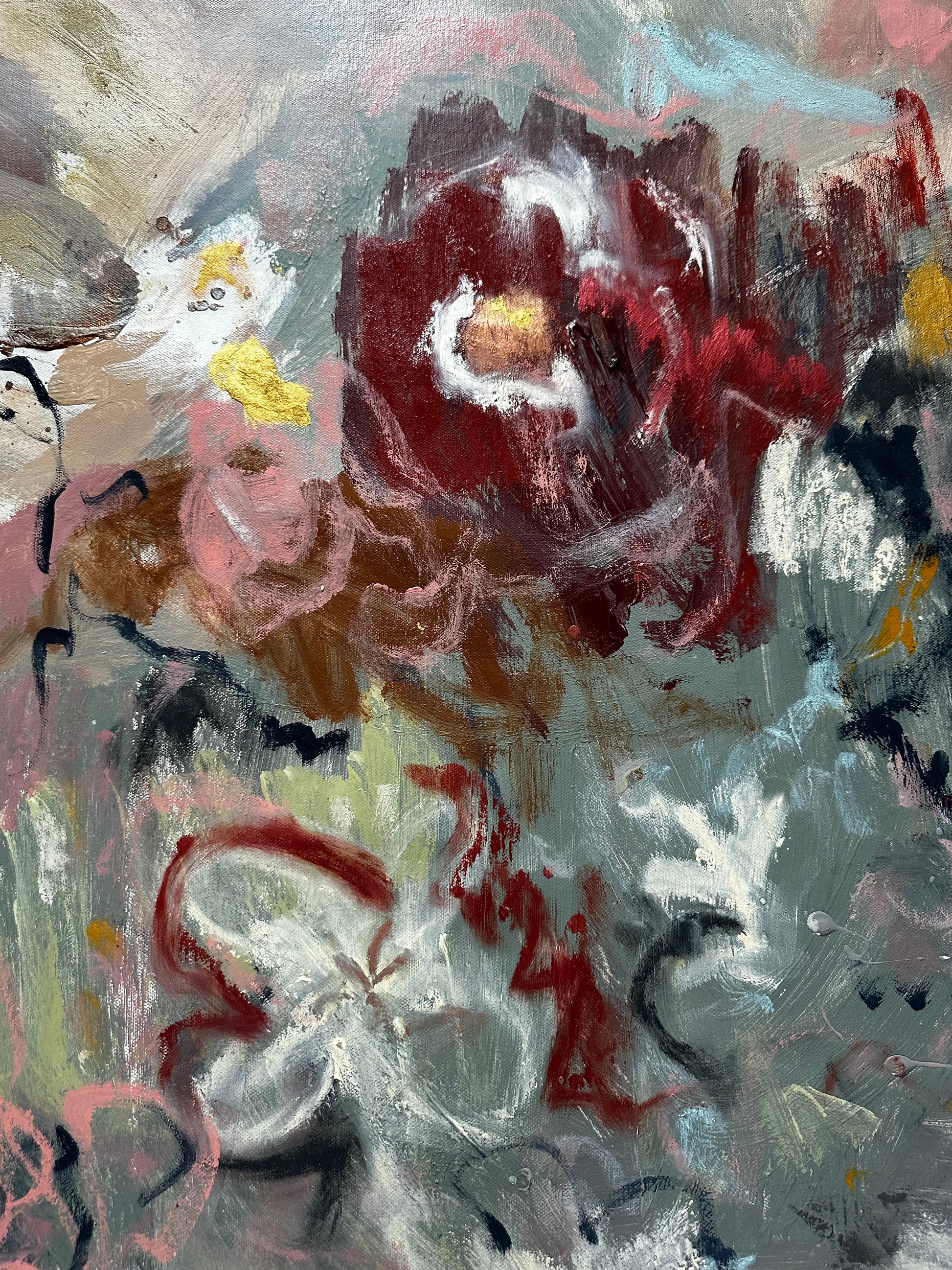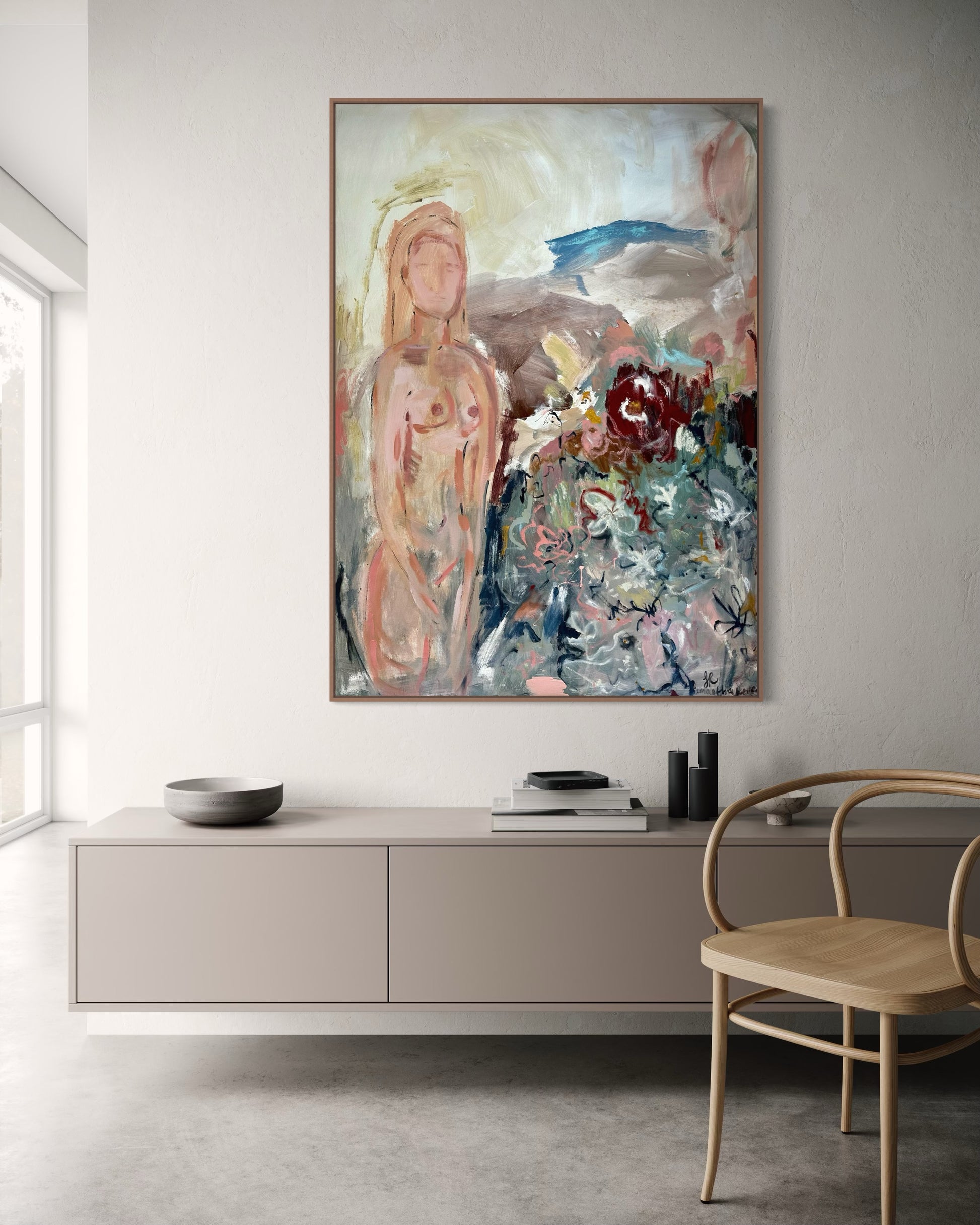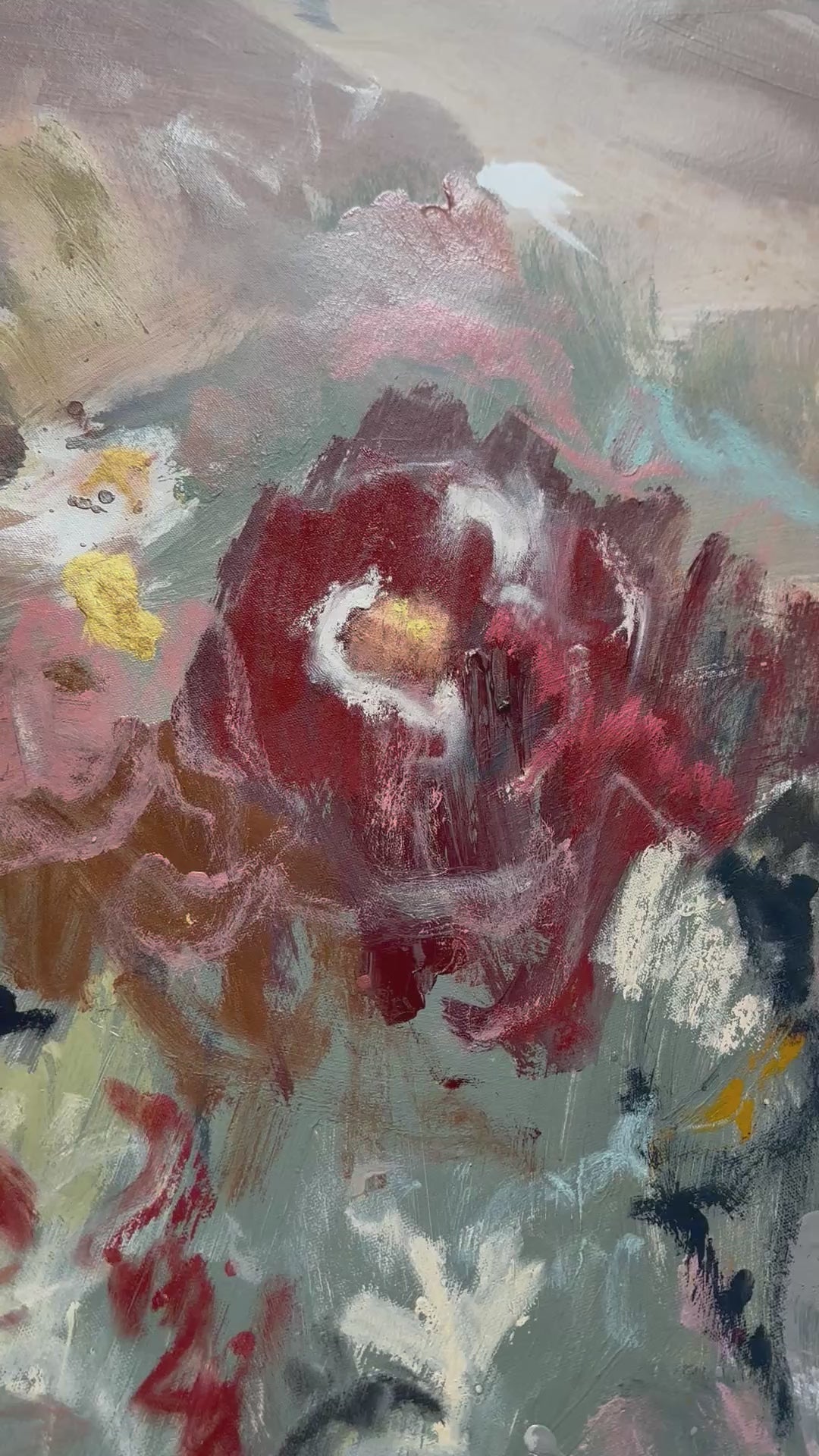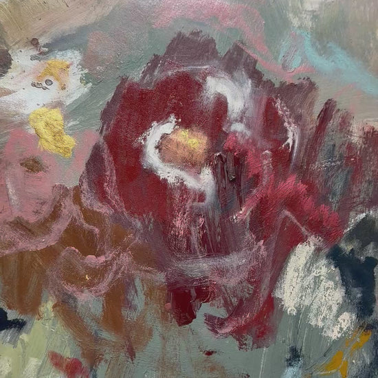 On The Moors is a beautiful and serene figurative landscape. Muted tones with an intense pop of red. This painting symbolises how I feel when I am in the British landscape. Home territory that I feel my soul feels connected to through its comfort and familiarity.