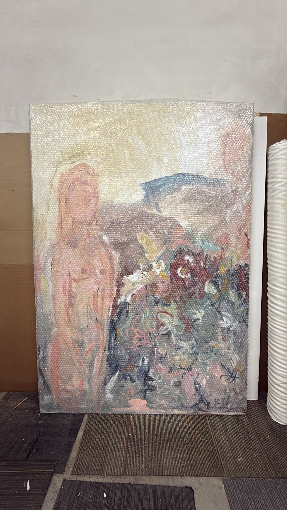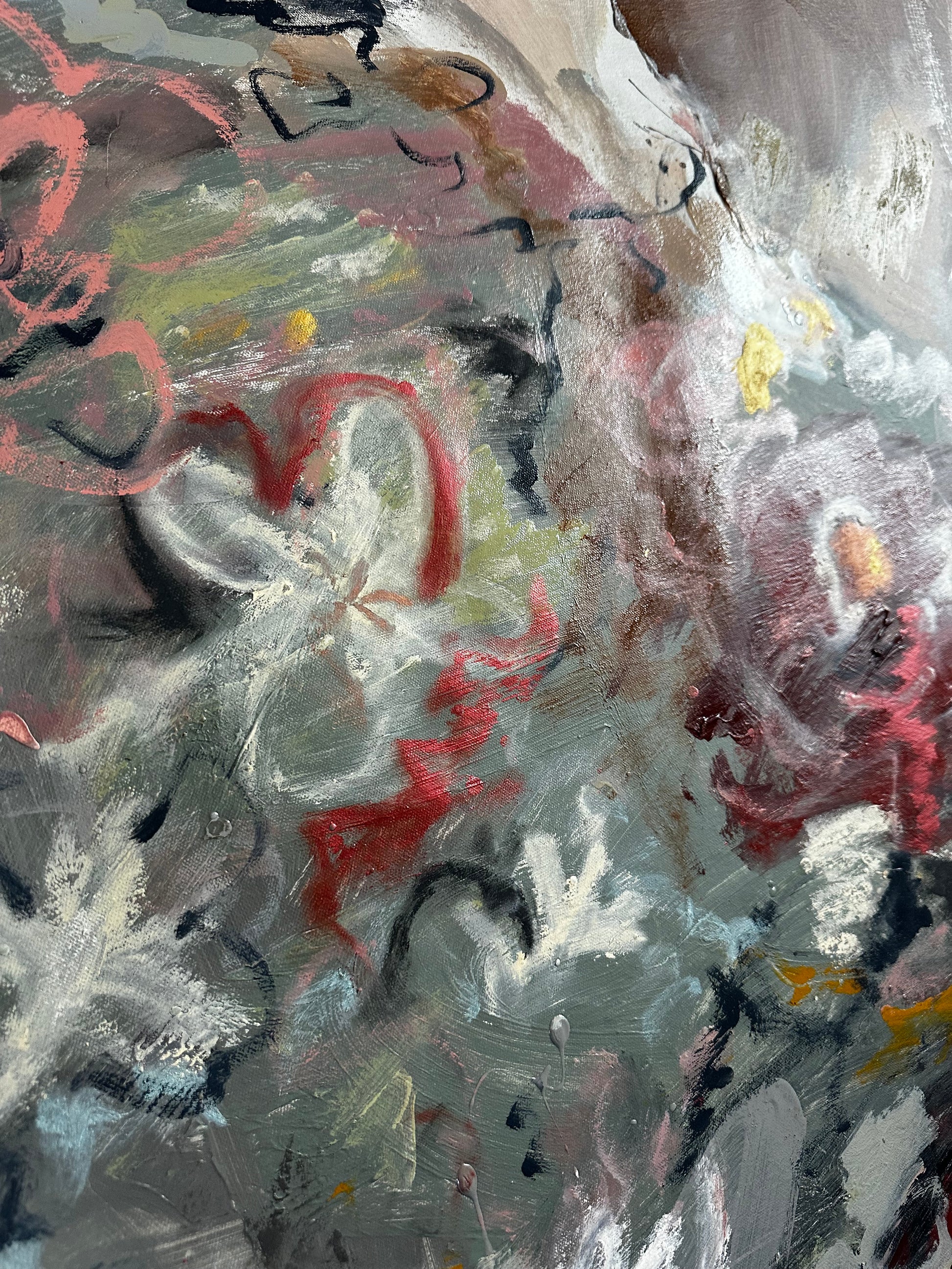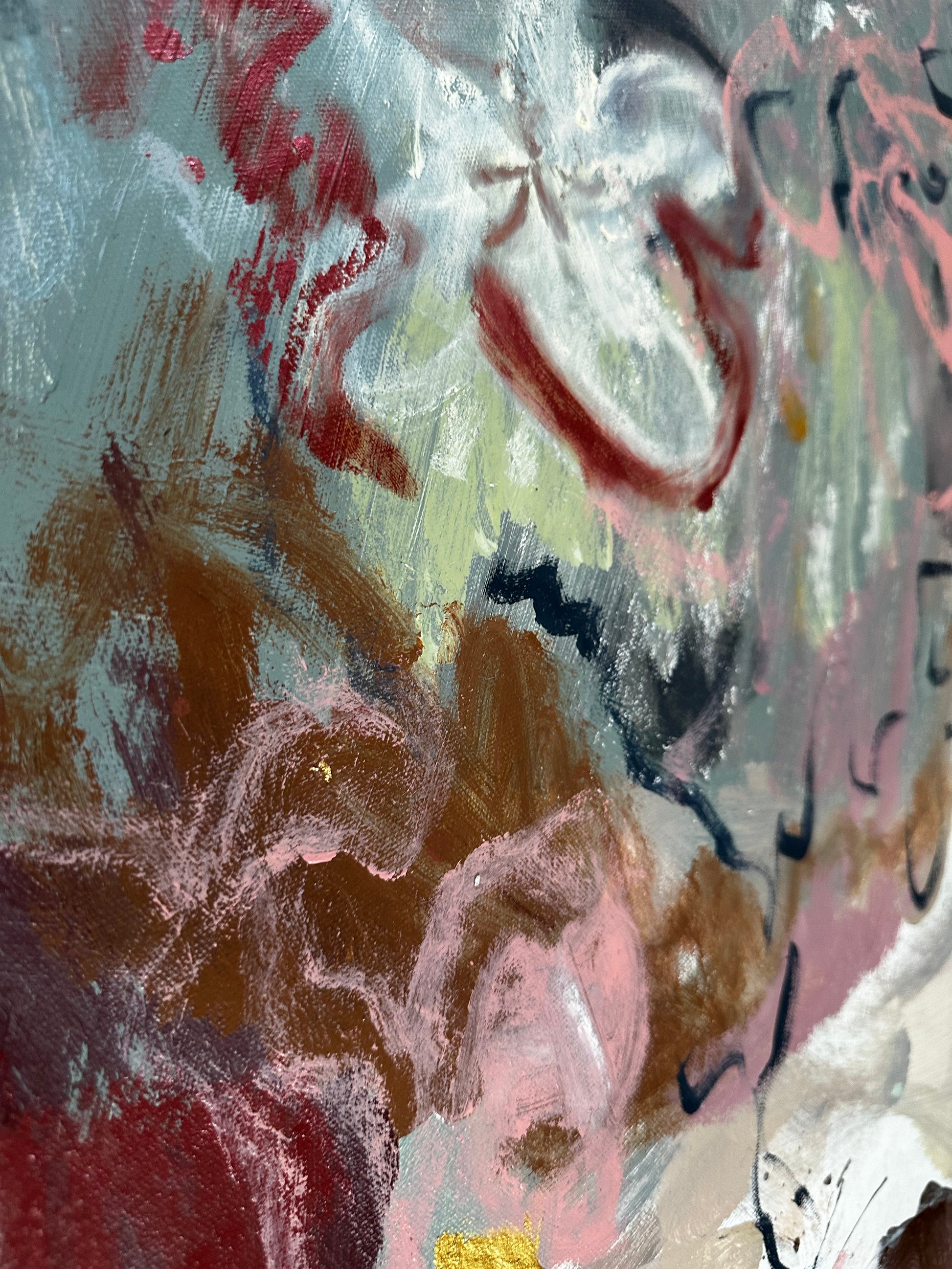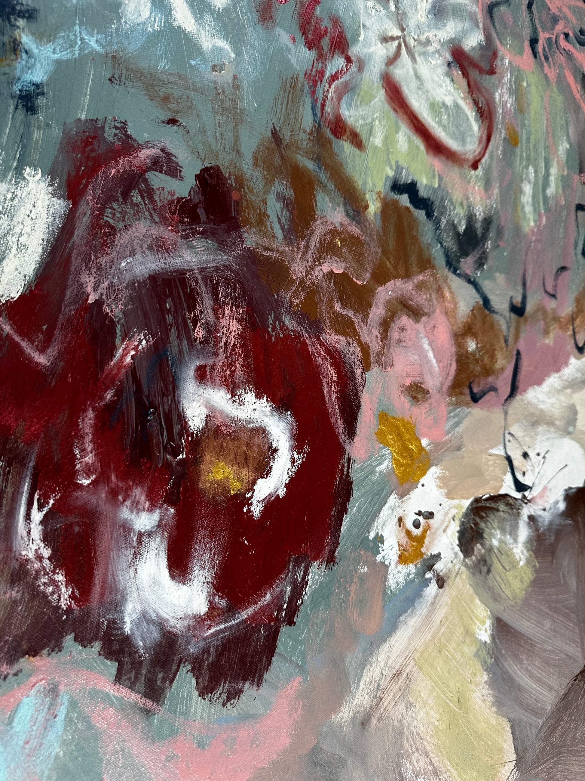 On The Moors is a beautiful and serene figurative landscape. Muted tones with an intense pop of red. This painting symbolises how I feel when I am in the British landscape. Home territory that I feel my soul feels connected to through its comfort and familiarity.