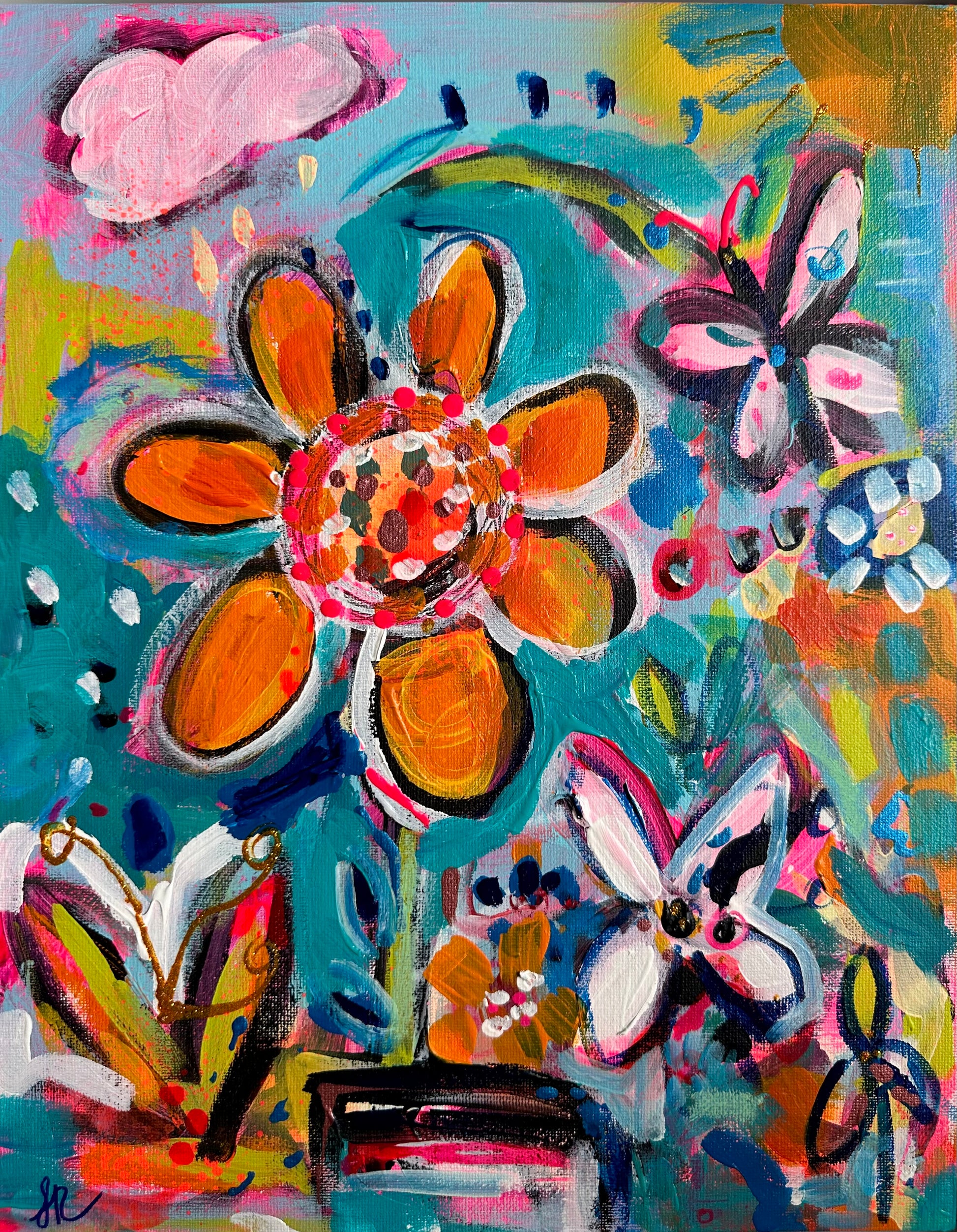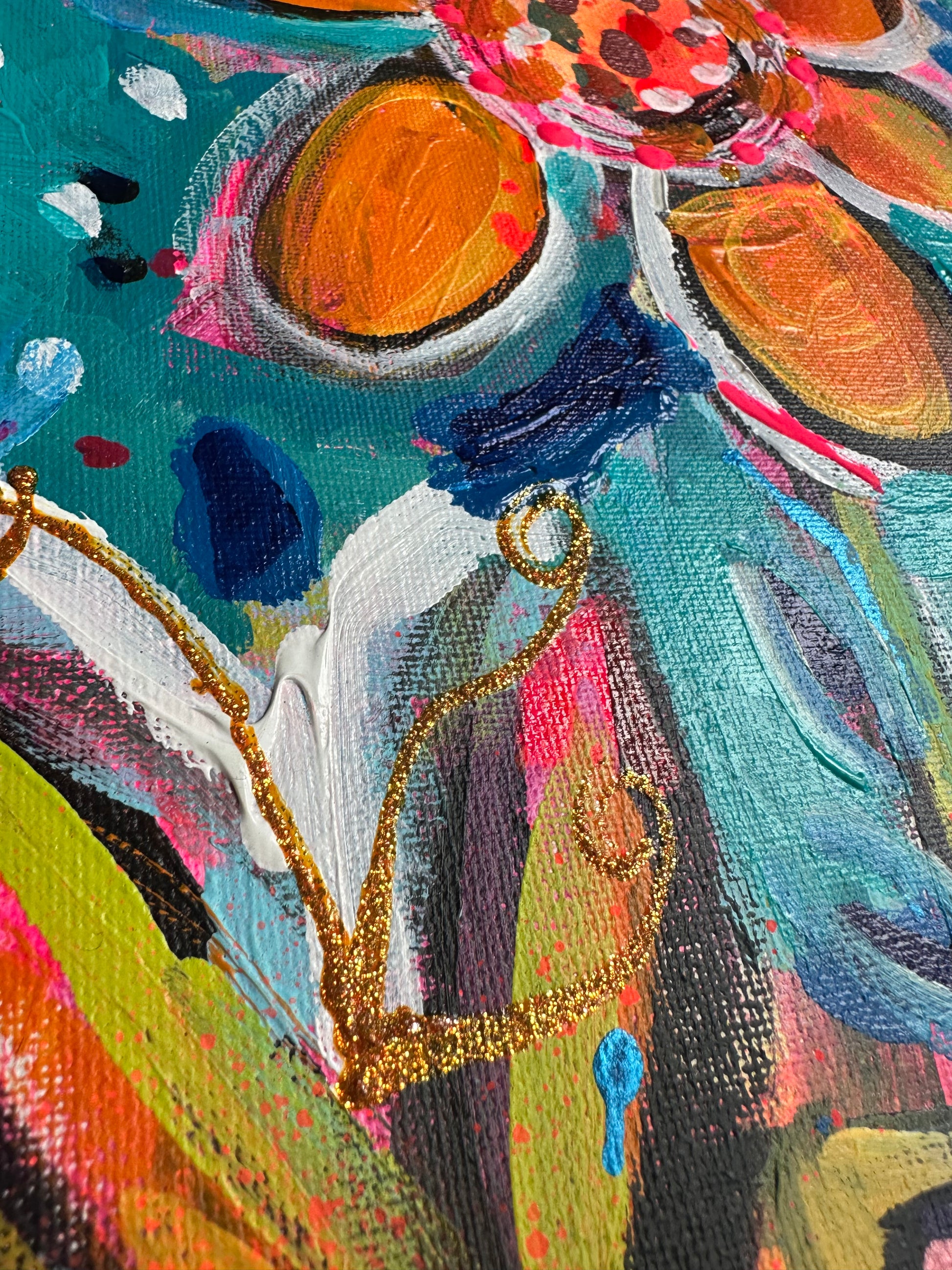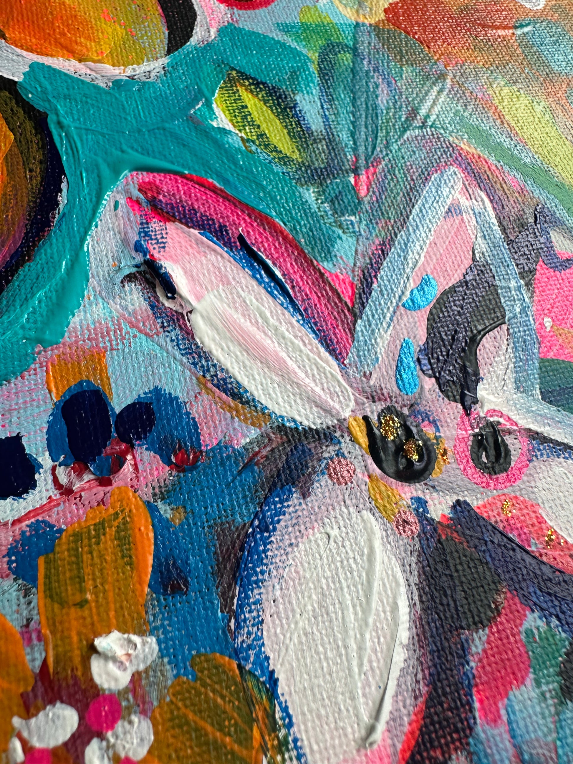 mixed media on board framed in white wood