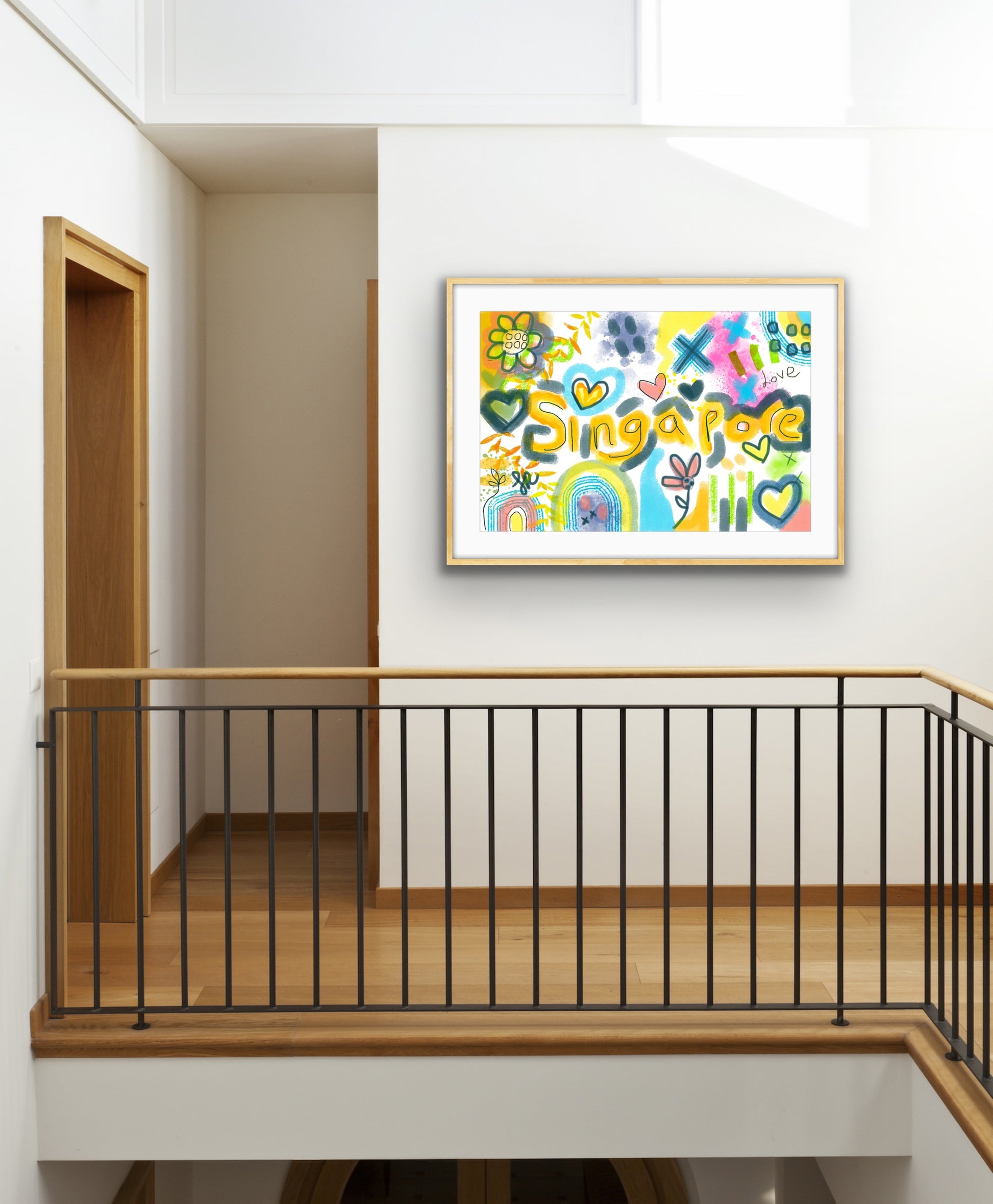 Singapore Love is a digitally created artwork that will add colour and playfulness to any interior.
