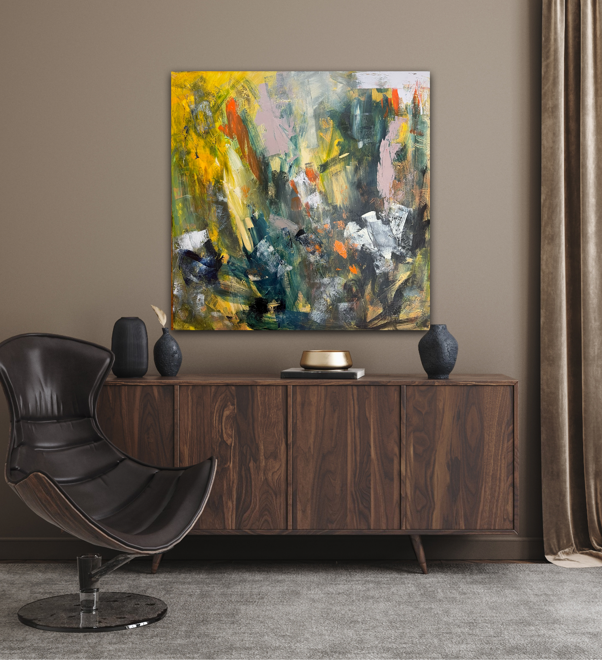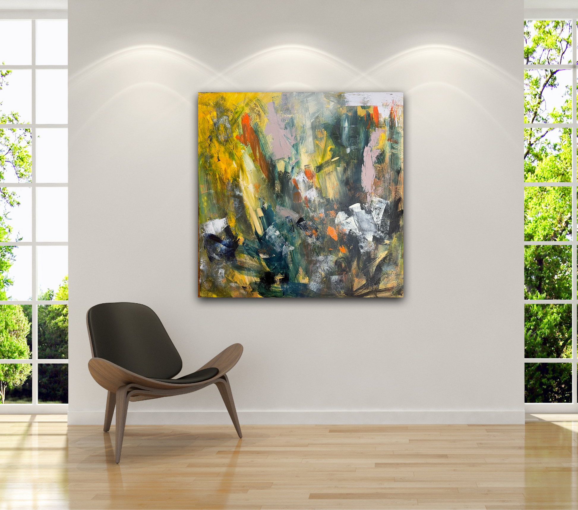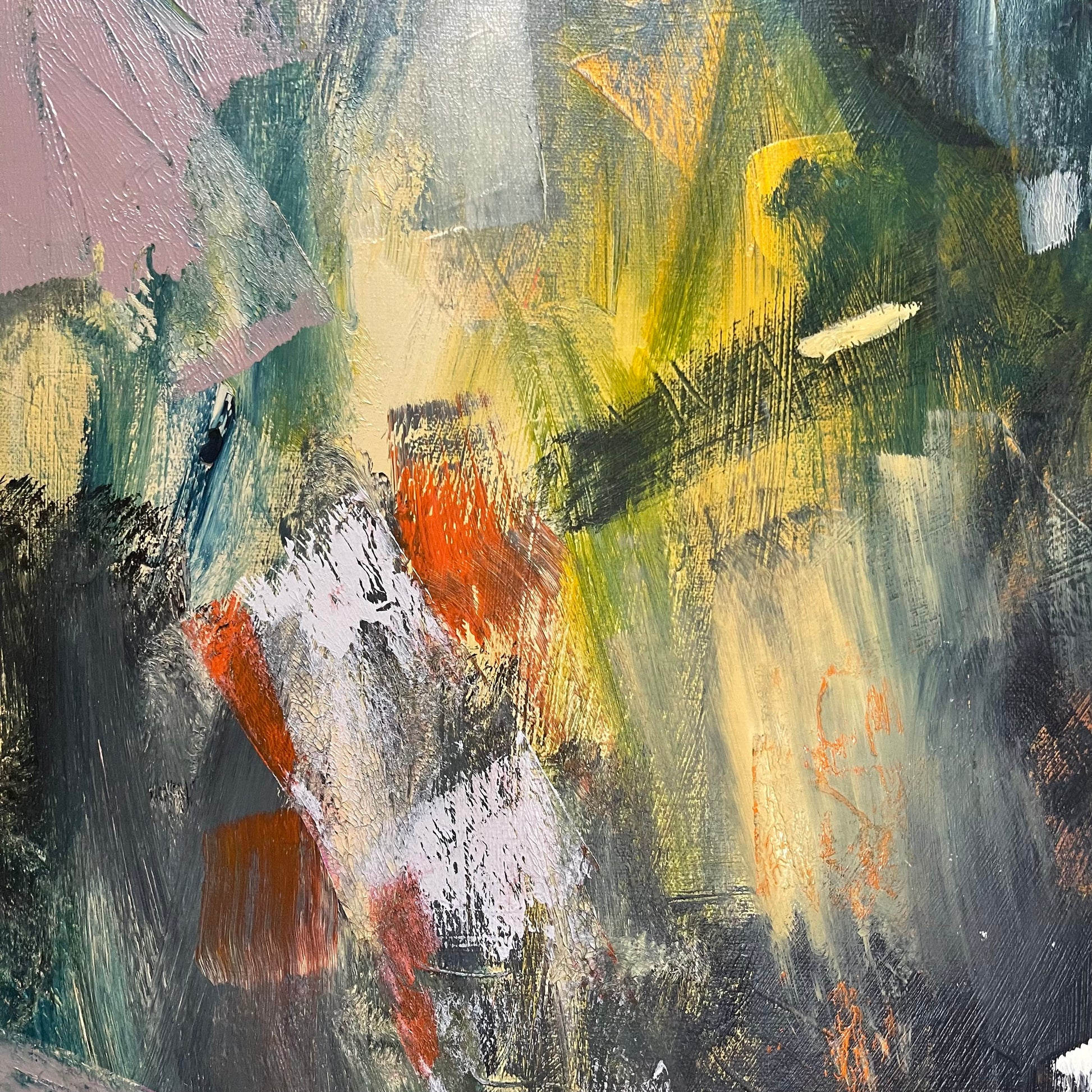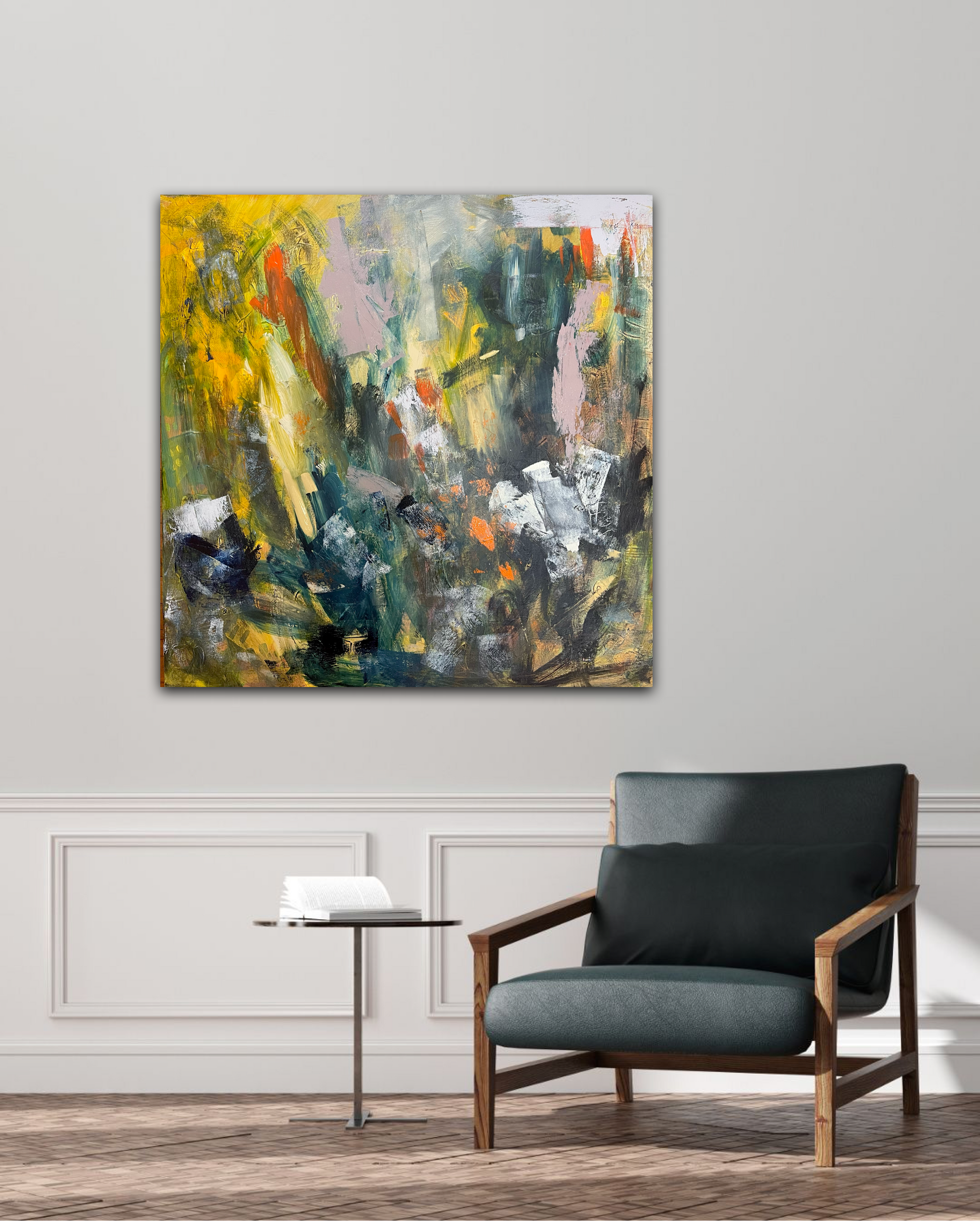We Keep Rising is an expressive abstract landscape on 36” x 36” stretched canvas.
